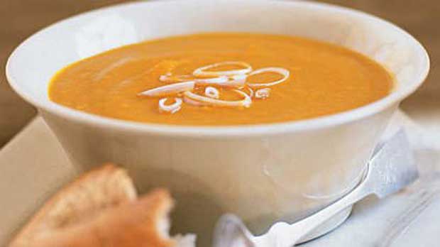 نگران چربی اشباع شده یا کلسترول موجود در این سوپ خامه ای نباشید. هویج و سیب زمینی شیرین غنی از ویتامین A و بتا کاروتن هستند که باعث بهبود بینایی می شود. کراکرهای غلات کامل را برای فیبر و dipping به سوپ اضافه کنید.
