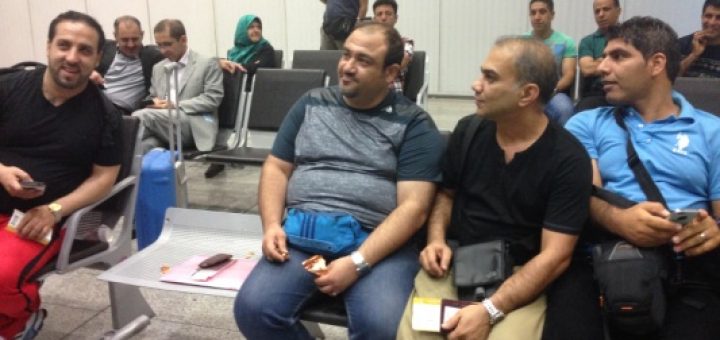 مهدی پاکدل، کامران تفتی و علی صالحی تماشاگران والیبال ایران و لهستان در استادیوم